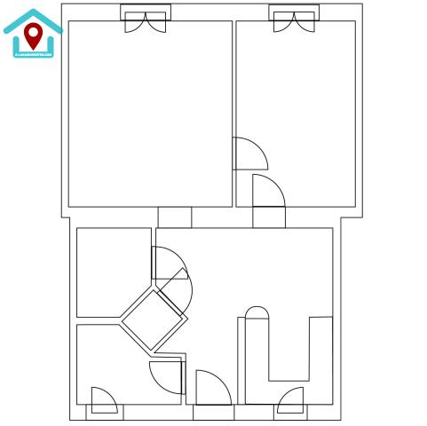 A lakásnak egyedi kialakítása van, a körfolyosóról a lakásba lépve jobbra egy amerikai konyha jellegű, beépített bútorokkal berendezett konyharész van, mellette a leendő lakók szándéka szerint kialakítható étkező.